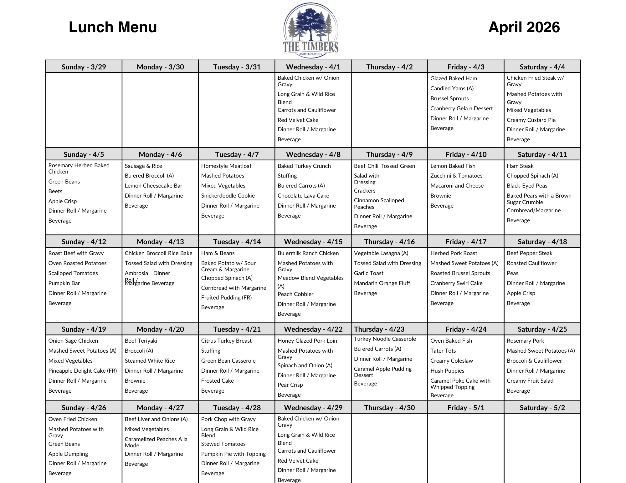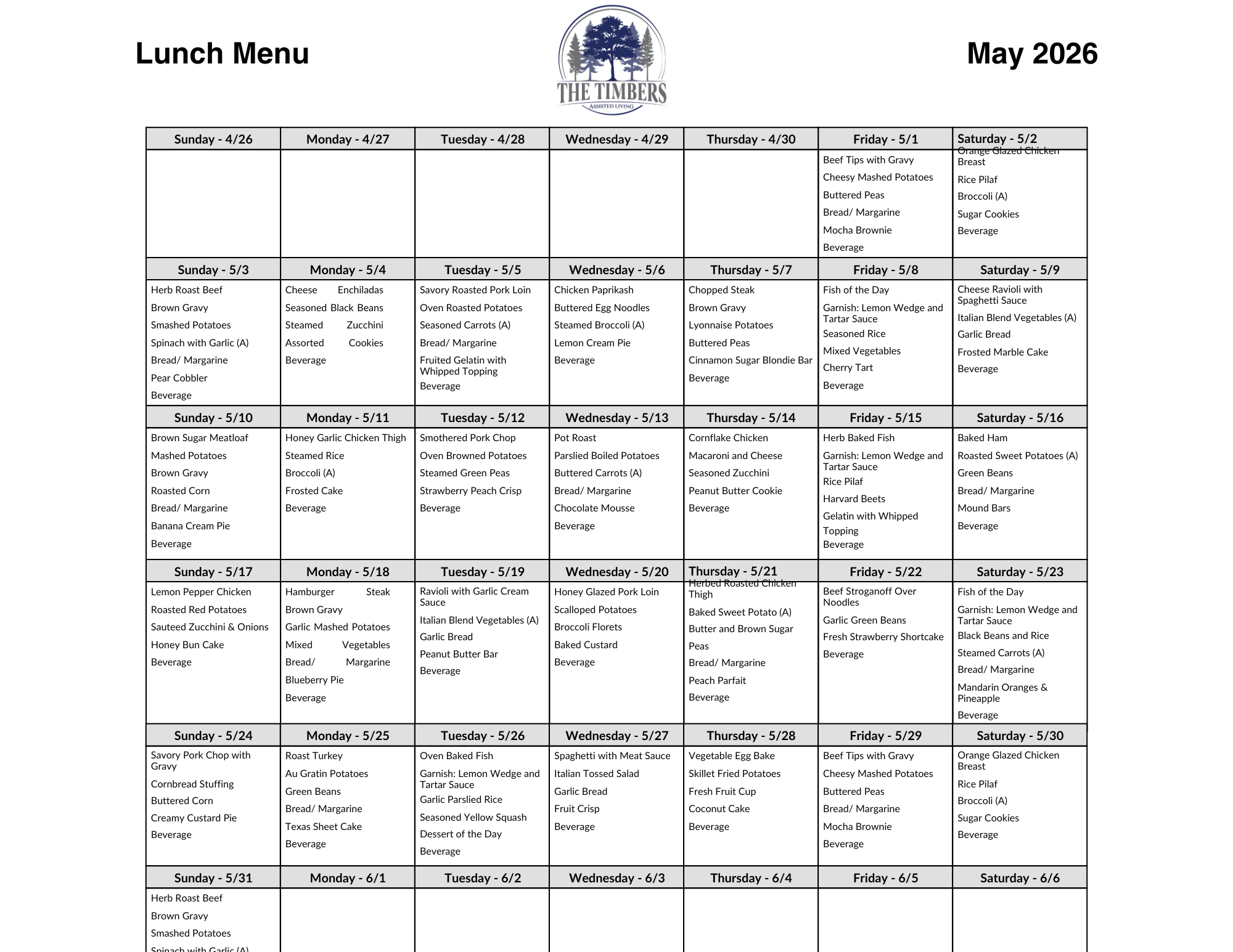 As we age, nutrition becomes even more critical in maintaining overall health and well-being. Consistent delicious and nutrient-rich meals help support immune function, promote heart health, and sustain energy levels throughout the day. At The Timbers, we recognize the unique dietary needs of our residents, tailoring meals to ensure they meet both individual preferences and nutritional requirements. A well-balanced diet not only contributes to physical health but also enhances mental clarity and emotional stability, helping seniors feel their best every day.